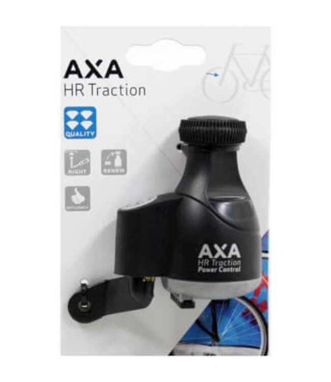 Axa dynamo HR traction rechts, hoog rendement dynamo, voorzien van geavanceerde techniek en extra groot loopwiel, op kaart