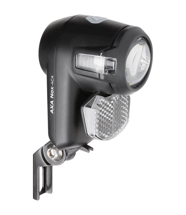 De AXA Nox City is een universeel toepasbare koplamp met een lichtopbrengst van 4 lux, lichtbundel 15m zien en 1000m gezien worden, Zichtbaar vanaf de zijkant, Waarschuwingsindicator bij batterij vervangen, Batterij levensduur: 40 uur (2 lux)