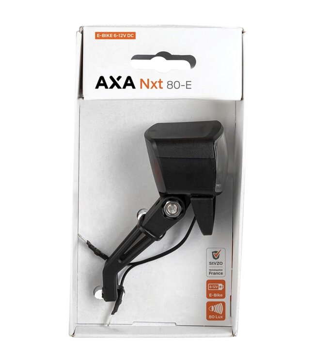 De AXA Nxt 80 is een E-bike voorlamp met een lichtopbrengst van 80 lux en is speciaal ontworpen om direct aan te sluiten op een 6-12V E-bike batterij. Het voorlicht heeft een compact, vierkant ontwerp dat perfect past bij de geometrie van de E-bikes! De geintegreerde reflector biedt extra veiligheid omdat je beter zichtbaar bent voor tegemoetkomend verkeer. Lichtbundel: 100 meter zien, 5500 meter gezien worden.