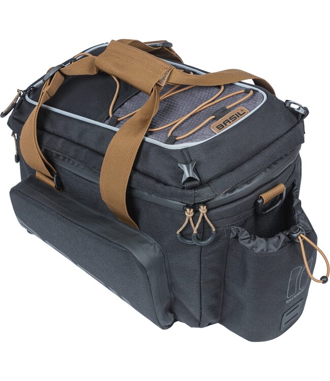 Basil Miles bagagedragertas XL Pro MIK, waterdicht (IPX 3),uitklapbare zijtassen,thermo bidonvak, helmvak, vakken voor koelelementen, expandable bovenvak, geschikt voor MIK systeemdragers/carrierplates,incl.MIK Adapterplaat, reflectie, 9-36L, black slate