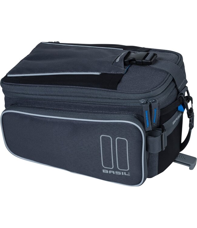 De Basil Sport Design Trunkbag MIK is een ruime bagagedragertas met een inhoud van maar liefst 7 tot 15 liter. De tas is namelijk voorzien van diverse vakken die je kunt met een rits kunt openklappen, waardoor je meer inhoud cre€?ô¸ert voor je spullen. De trunkbag heeft een voorgemonteerde MIK adapterplaat (70171) en is daarmee geschikt voor MIK bagagedragers of de MIK carrierplaat. Dankzij dit systeem klik je de tas eenvoudig op je bagagedrager. En met hetzelfde gemak klik je de tas er ook weer vanaf. Met de afneembare schouderband neem je de tas comfortabel over je schouder mee.