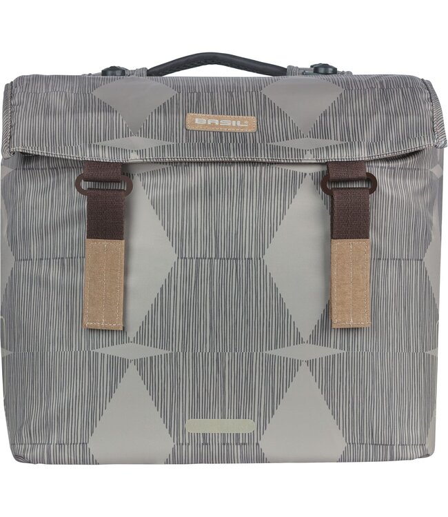 Basil Elegance dubbele fietstas MIK, Choose Green label, gerecycled PET polyester, geheel gevoerd, waterkerende vouwsluiting, geschikt voor MIK systeemdragers/carrierplates, incl.MIK Adapterplate, reflectie op alle zijden, 40-49L, chateau taupe