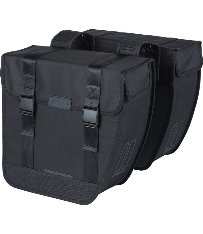 Basil Tour XL dubbele fietstas, waterafstotend 600D polyester, afgerond,extra versteviging,eenvoudig bedienbare sluitingen,Universal Bridge (geschikt voor Basil DBS, MIK, RT platen (apart verkrijgbaar)), voorzien van regenoren, ton sur ton reflectie, 35L,zwart