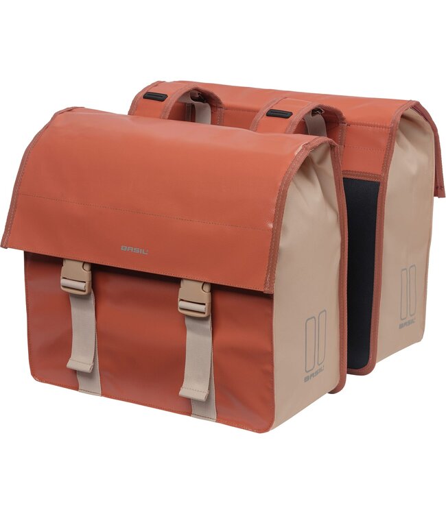 Basil Urban Load dubbele fietstas, waterdicht tarpaulin/polyester, waterkerende vouwsluiting, kliksluitingen, Universal Bridge (geschikt voor Basil DBS, MIK, Racktime platen (apart verkrijgbaar)), reflectie, 48-53L, ,terra red/rose