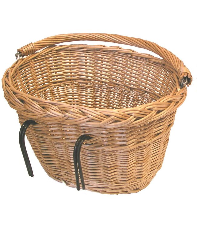 Basil Denver. Rieten fietsmand, ovaal, voor voorop of achterop de fiets, met dubbele haken, hengsel, naturel afgelakt.