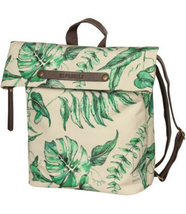 Basil Ever-Green fietsrugzak, gerecycled PET polyester, voering met binnenvak, waterkerende vouwsluiting, voorvak met magneetsluiting, vegan leder handgreep, rugzakbanden verstelbaar tot schouderband, reflectie op alle zijden,14-19L, sandshell beige Het materiaal van deze tas is imitatie-katoen 100% polyesther wat een duurzamer materiaal is dan katoen en is het materiaal bestaat voor 40% uit gerecyclede PET flessen. De coating van deze stof is ecologische TPU met ontvangen ECO certificaat.