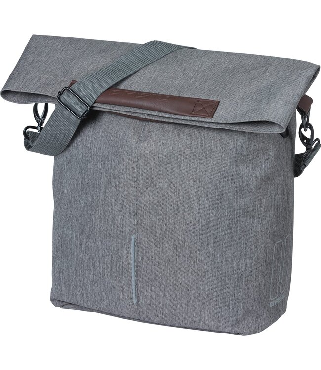Basil Shoppertas City. Shopper, gemaakt van polyester, waterkerende vouwsluiting met magneet, inclusief afneembare schouderband, vegan leder handgrepen, binnenvak met rits, bevestigingsmogelijkheid LED, Hook-On System, reflectie op alle zijden, inhoud: 14-16L, Grey Melee.