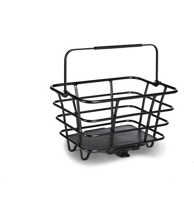 Cortina Mand Seoul AVS zwart. Metalen rechthoekige mand met klik systeem geschikt voor AtranVelo System (AVS) en passend op de Cortina Common voor- en achterdrager en de E-Octa achterdrager. Met soft grip handvat in mat zwart. Gemaakt van licht aluminium. Afmeting lxbxh 40x30x20cm. 24L. Indien de bagagedrager niet is voorzien van het AVS systeem dan moet er gebruik gemaakt worden van de AVS adapter (bij te bestellen met AVS174941). Inlays voor de mand zijn los verkrijgbaar.