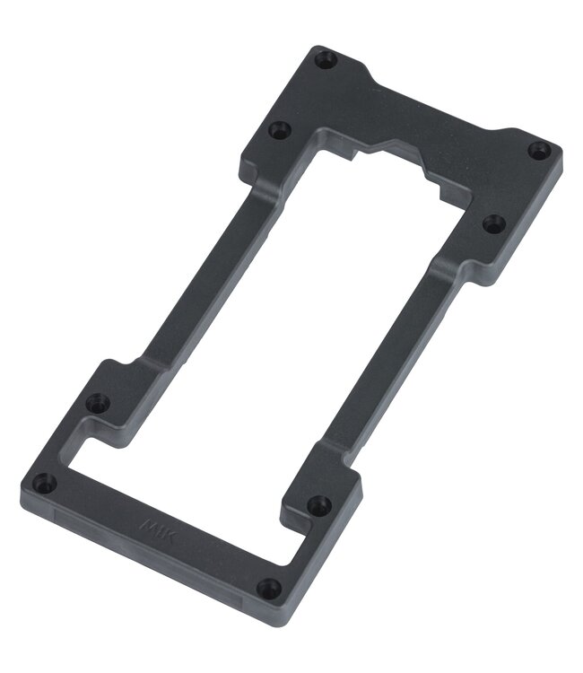 MIK Double Decker voor MIK adapterplaat, te monteren op de brug van een dubbele MIK fietstas waardoor hier nog een MIK accessoire bovenop gemonteerd kan worden, 4cm naar achteren verstelbaar zodat er meer ruimte ontstaat achter het zadel, zwart