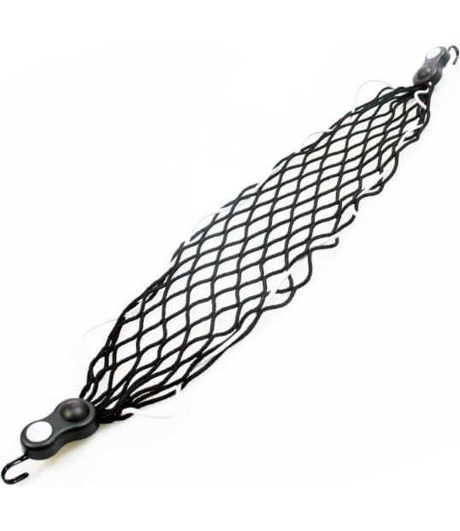 Mirage bagagenet/spin-netje/balnet met haken, het netje is 49-100 cm lang en 5-45 cm breed.Inclusief de lengte van de haken is de lengte 62-113 cm lang.