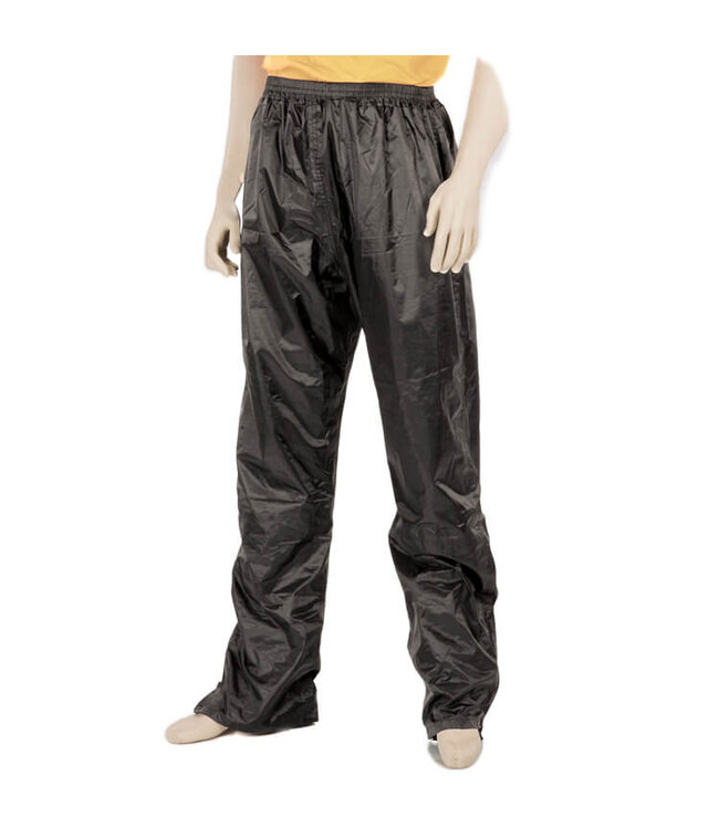 Mirage regenbroek Luxury maat M zwart, 100% water en winddicht, goed sluitend elastische band, tot en met de knie gevoerd, naden getaped, ruime steekzakken, onderkant pijp uitgevoerd met rits