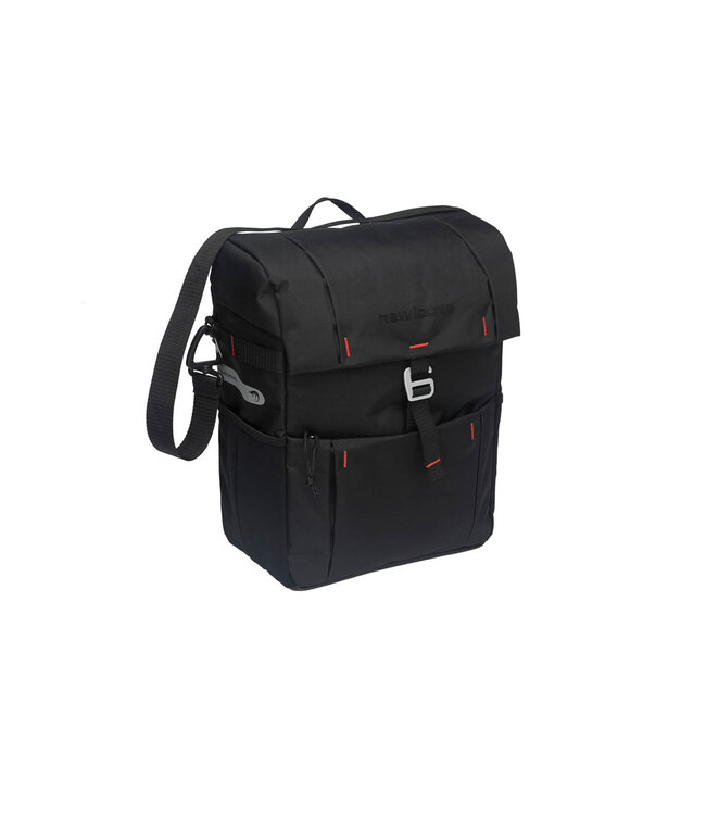 New Looxs tas Single Vigo black, 18 liter, 31 x 40 x 15 cm, Hoofdvak met extra kleinere vakken, Inclusief regenhoes, instelbare bevestigingshaken, Reflecterende bies