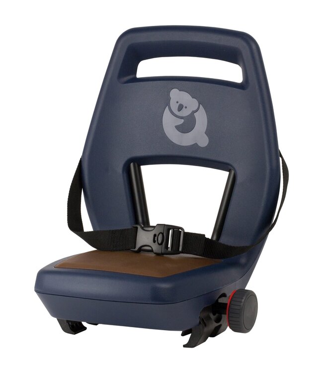 Qibbel Junior 6+ zitje blauw met bruin kussentje, compleet met voetsteuntjes en gordel, geschikt voor bagagedragers van 11 tot 17 centimeter breed en met een buisdiameter van 10 tot 22 millimeter.