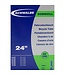 Schwalbe binnenband Downhill 24 Inch Auto - AV10D/54-507, 57-507, 60-507, 62-507, 65-507, 70-507, 75-507. De Schwalbe binnenbanden zijn betrouwbaar. Fietsdetaillisten waarderen hem om zijn hoge betrouwbaarheid. Iedere band wordt in de fabriek opgepompt en zo 24 uur op luchtdichtheid getest. De band houdt de luchtdruk langer vast. In de productie vereist Schwalbe een zeer hoog butyl aandeel en een zeer hoge reinheid van het materiaal. Zo houdt de Schwalbe binnenband de luchtdruk beduidend langer vast dan andere binnenbanden. Het is een groepen-binnenbandsysteem: Een Schwalbe binnenband is extreem elastisch en past op meerdere bandafmetingen. Hierdoor worden ze groepen binnenbanden genoemd. Zo past bijvoorbeeld de binnenband met nummer 19A voor bandafmeting van 27.5 inch tot 29 Inch en voor de breedte van 40 tot 62mm. Als laatste is de band 100% volledig recyclebaar. Downhill-uitvoering: Extreem robuust, met versterkte ventielvoet.