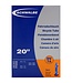 Schwalbe binnenband Standaard 20 Inch Hollands - DV7A/37-438, 28-440, 37-440, 28-541, 37-451. De Schwalbe binnenbanden zijn betrouwbaar. Fietsdetaillisten waarderen hem om zijn hoge betrouwbaarheid. Iedere band wordt in de fabriek opgepompt en zo 24 uur op luchtdichtheid getest. De band houdt de luchtdruk langer vast. In de productie vereist Schwalbe een zeer hoog butyl aandeel en een zeer hoge reinheid van het materiaal. Zo houdt de Schwalbe binnenband de luchtdruk beduidend langer vast dan andere binnenbanden. Het is een groepen-binnenbandsysteem: Een Schwalbe binnenband is extreem elastisch en past op meerdere bandafmetingen. Hierdoor worden ze groepen binnenbanden genoemd. Zo past bijvoorbeeld de binnenband met nummer 19A voor bandafmeting van 27.5 inch tot 29 Inch en voor de breedte van 40 tot 62mm. Als laatste is de band 100% volledig recyclebaar. Standaarduitvoering: Hoge betrouwbaarheid, al vele jaren beproefd.