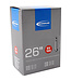 Schwalbe binnenband Smal 26 Inch Frans - SV12A/25-559, 28-559, 32-559, 35-559, 37-559, 40-559. De Schwalbe binnenbanden zijn betrouwbaar. Fietsdetaillisten waarderen hem om zijn hoge betrouwbaarheid. Iedere band wordt in de fabriek opgepompt en zo 24 uur op luchtdichtheid getest. De band houdt de luchtdruk langer vast. In de productie vereist Schwalbe een zeer hoog butyl aandeel en een zeer hoge reinheid van het materiaal. Zo houdt de Schwalbe binnenband de luchtdruk beduidend langer vast dan andere binnenbanden. Het is een groepen-binnenbandsysteem: Een Schwalbe binnenband is extreem elastisch en past op meerdere bandafmetingen. Hierdoor worden ze groepen binnenbanden genoemd. Zo past bijvoorbeeld de binnenband met nummer 19A voor bandafmeting van 27.5 inch tot 29 Inch en voor de breedte van 40 tot 62mm. Als laatste is de band 100% volledig recyclebaar. Standaarduitvoering: Hoge betrouwbaarheid, al vele jaren beproefd.