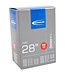 Schwalbe binnenband Standaard Tour 28 Inch Frans - SV17/40-609*, 28-622, 30-622, 32-622, 37-622, 40-622, 42-622, 47-622*, 32-630*, 40-635*. De Schwalbe binnenbanden zijn betrouwbaar. Fietsdetaillisten waarderen hem om zijn hoge betrouwbaarheid. Iedere band wordt in de fabriek opgepompt en zo 24 uur op luchtdichtheid getest. De band houdt de luchtdruk langer vast. In de productie vereist Schwalbe een zeer hoog butyl aandeel en een zeer hoge reinheid van het materiaal. Zo houdt de Schwalbe binnenband de luchtdruk beduidend langer vast dan andere binnenbanden. Het is een groepen-binnenbandsysteem: Een Schwalbe binnenband is extreem elastisch en past op meerdere bandafmetingen. Hierdoor worden ze groepen binnenbanden genoemd. Zo past bijvoorbeeld de binnenband met nummer 19A voor bandafmeting van 27.5 inch tot 29 Inch en voor de breedte van 40 tot 62mm. Als laatste is de band 100% volledig recyclebaar. Standaarduitvoering: Hoge betrouwbaarheid, al vele jaren beproefd. *Niet in de Extralight-uitvoering verkrijgbaar.