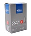 Schwalbe binnenband Standaard 24 Inch Frans - SV9/47-507, 28-540, 37-540, 28-541, 37-541. De Schwalbe binnenbanden zijn betrouwbaar. Fietsdetaillisten waarderen hem om zijn hoge betrouwbaarheid. Iedere band wordt in de fabriek opgepompt en zo 24 uur op luchtdichtheid getest. De band houdt de luchtdruk langer vast. In de productie vereist Schwalbe een zeer hoog butyl aandeel en een zeer hoge reinheid van het materiaal. Zo houdt de Schwalbe binnenband de luchtdruk beduidend langer vast dan andere binnenbanden. Het is een groepen-binnenbandsysteem: Een Schwalbe binnenband is extreem elastisch en past op meerdere bandafmetingen. Hierdoor worden ze groepen binnenbanden genoemd. Zo past bijvoorbeeld de binnenband met nummer 19A voor bandafmeting van 27.5 inch tot 29 Inch en voor de breedte van 40 tot 62mm. Als laatste is de band 100% volledig recyclebaar. Standaarduitvoering: Hoge betrouwbaarheid, al vele jaren beproefd.