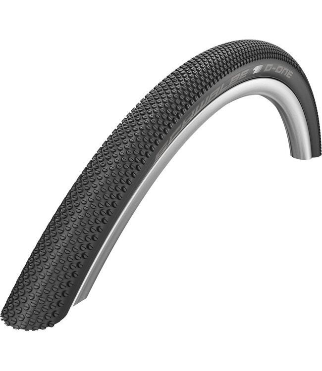 Schwalbe G-ONE Allround Evo, Super Ground, TLE Folding 40-622 B/B-SK HS473 ADDIX SpeedGrip 67EPI Schwalbe One goes Gravel. Ook voor de nieuwe trend Gravelbikes biedt de Schwalbe One familie de juiste band. Met het lichtrollende G-One profiel en de Tubeless Easy techniek is het geweldig om over veld- en boswegen te 'vliegen'. De G-One Allround is geschikt voor E-bikes met een trapondersteuning tot 25km-u. Voor de snellere E-bikes, de S-pedelecs, worden banden geadviseerd welke tot 50 km-u zijn goedgekeurd.