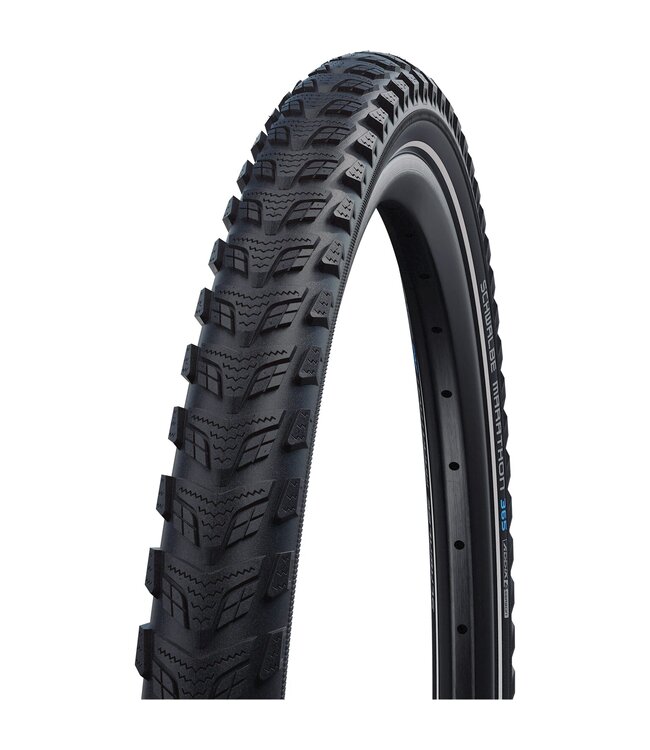 Schwalbe buitenband Marathon 365 Performance Green-Guard in zwarte kleur met reflectie. Grootte van de band, ERTO 50/622, 28 x 2.00. Vervangt de Marathon GT 365. Volledige grip in alle seizoenen (ook in koude, natte en besneeuwde omstandigheden) dankzij het lamellenprofiel. Zeer goede bescherming tegen lekrijden dankzij de Green Guard anti-leklaag.
