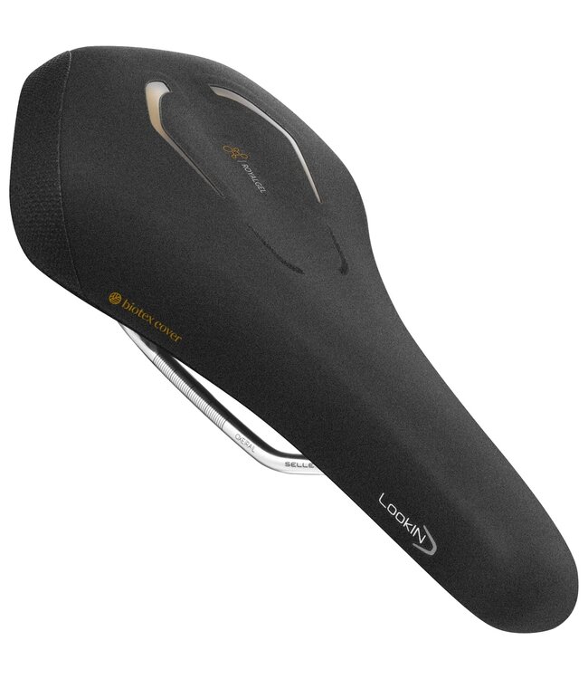 Dit beroemde fietszadel staat voor Selle Royals toewijding aan het milieu via innovatie. De basis is gemaakt 100% gerecycled plastic en het zadeldek van 50% biomaterialen. De Royalgelâ„¢ zadelvulling, zichtbaar door de unieke vensters op het oppervlak, biedt het grootste comfort en met de speciale constructie van de basis rijd je soepel over elke ondergrond. De Lookin Evo is een duurzame optie en een degelijke allrounder, zowel voor naar het werk als op ontdekkingstochten.