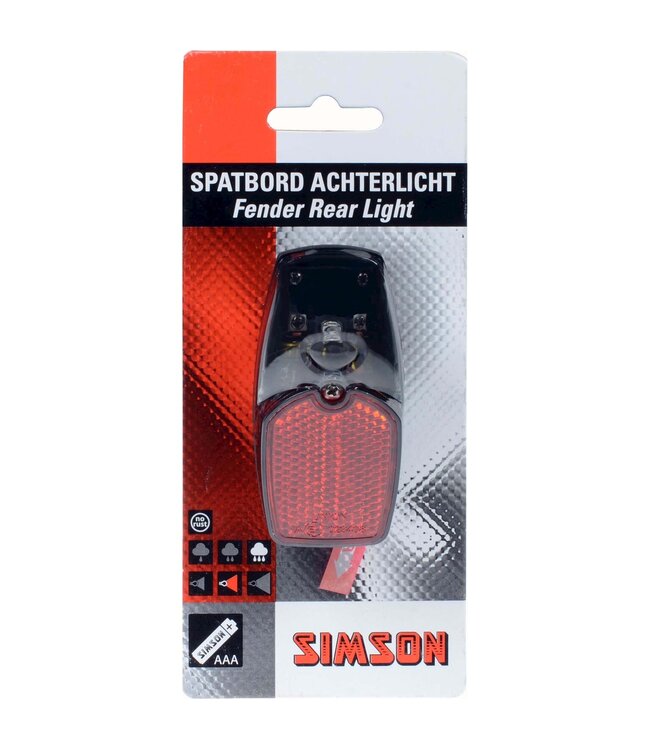 Het Simson Batterij Spatbord achterlicht LED is voorzien van roestvrijstaal bevestigingsmateriaal en heeft roestvrijstalen metaaldelen aan de binnenzijde. De niet roestvrijstaal metaaldelen zijn extra vernikkeld. De drukknop bevindt zich aan de achterzijde van het lamphuis. Hierdoor is het lampje absoluut 100% spat- en regenwaterdicht en kan roestvorming niet meer plaatsvinden. Het lampje kan eenvoudig op het spatbord worden gemonteerd met behulp van een ringsteeksleutel. Inclusief 2 x AAA batterijen.