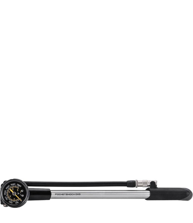 De grote broer van PocketShock DXG! Een verlengde loop voor snel oppompen en een gemakkelijk af te lezen meetklok voor nauwkeurige drukmetingen tot 360 psi 24,8 bar. Een ontluchtingsknop en Pressure-Rite-connector maken het instellen van de juiste druk eenvoudig en elimineren luchtverlies bij het loskoppelen, terwijl de flexibele slang spanning van de klepsteel haalt tijdens het pompen.