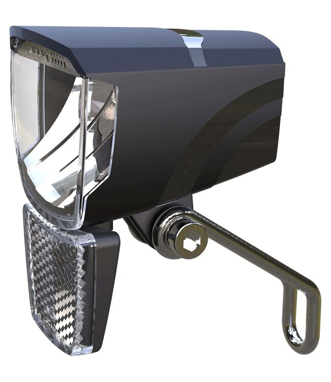 Union koplamp UN-4270E Spark 6-44v 50 Lux zwart. Geschikt voor EPAC (E-Bike) gebruik tussen 6-44 Volt (gelijkstroom). Inclusief RVS bracket voor voorvork montage, 1 x LED wit met een lichtopbrengst 50 LUX en met zwart modern kunststof lamphuis met 1+1 externe kabelaansluiting aangebacht aan de achterzijde van het lamphuis. Met Duitse goedkeur.