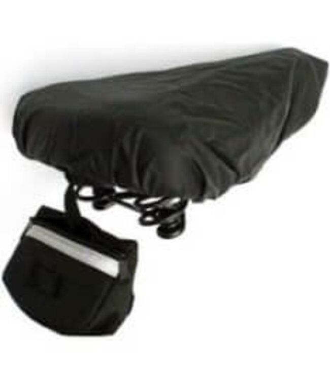 zadeldek Raincover/regenhoes in handig opbergtasje te bevestigen aan zadelbrug op kaart
